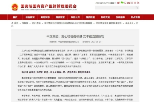 【国资委网站】中煤集团:凝心铸魂强根基 实干担当建...